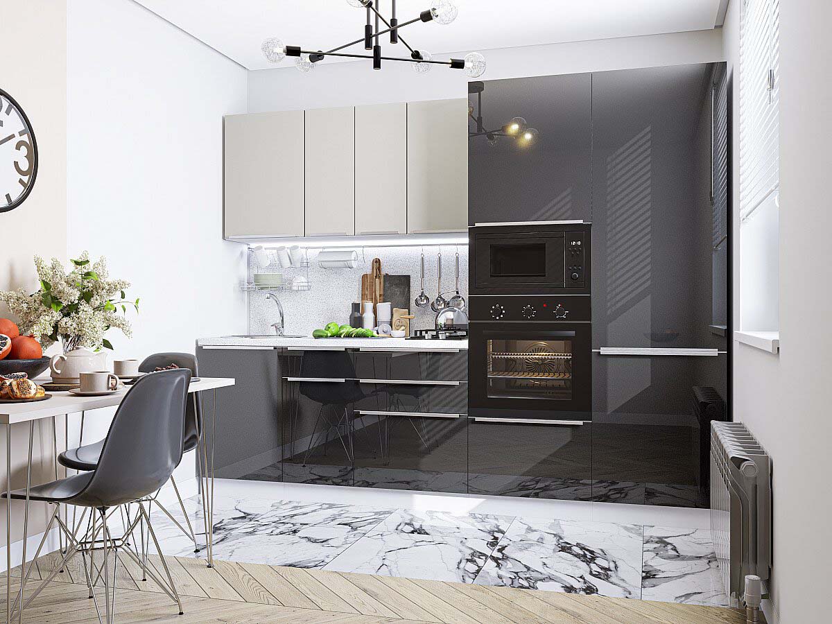 В стоимость кухни ФВ-82.12 Silky White/Anthracite входят все модули, столешница и фурнитура. Цвет можно указать в комментариях при оформлении через корзину или менеджеру по тел.