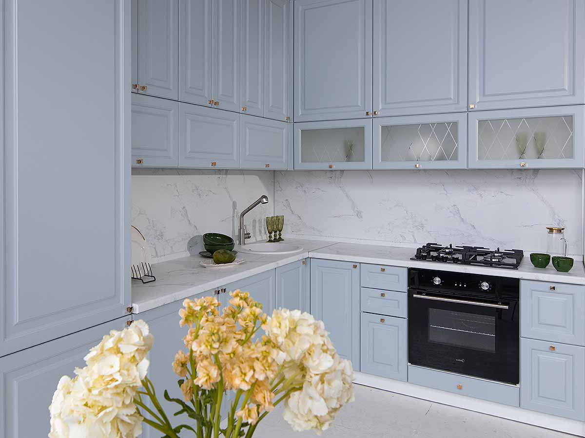 | Преимущества: | Фасады с элегантной фрезеровкой имитируют классическое филенчатое исполнение, придавая интерьеру дорогой и респектабельный вид. Материал фасадов не боится влаги, перепадов температур и частой уборки — кухня останется безупречной даже спустя годы |