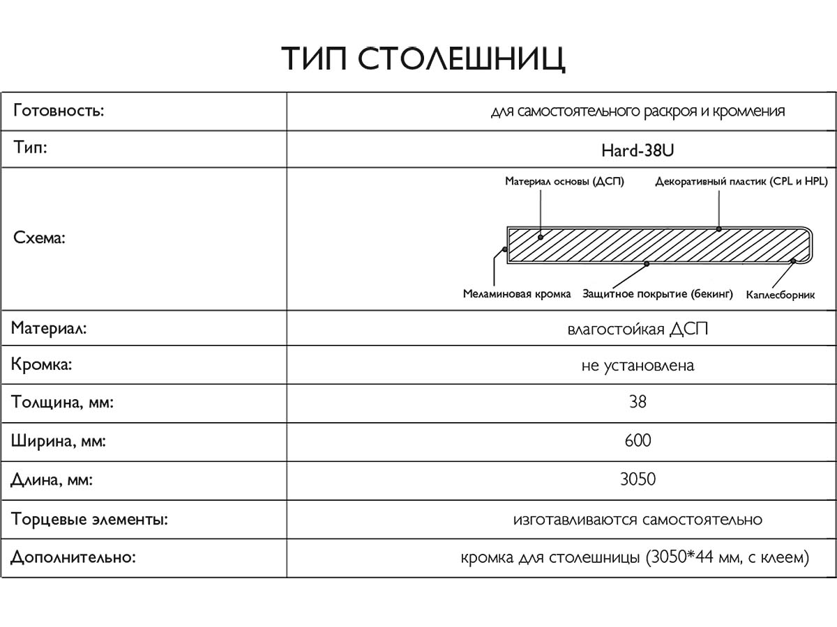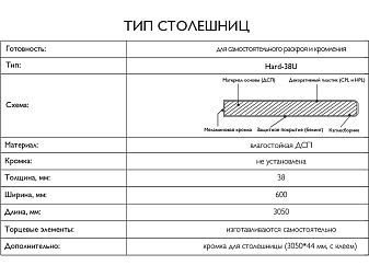 | Комплектация: | Столешница упакована в герметичную коробку из гофрокартона для безопасной транспортировки |